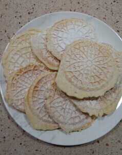 Pizzelle are an Italian cookie, it’s a crispy waffle type of cookie made with sugar, flour, eggs, and butter is the main ingredient.